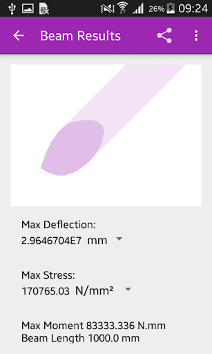 The results predicted by Beam Calculator are also compared with numerical simulations. The analytical results predicted by app matches closely with the industry standard numerical finite element analysis solver results.