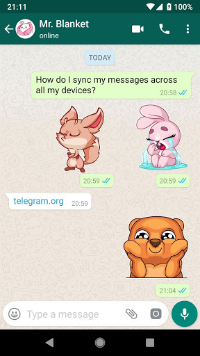 The Telegram stickers in this app are published with permission from Telegram, obtained at stickers@telegram.org