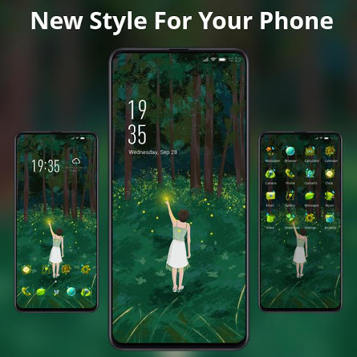 Beautiful forest bright firefly girl theme will bring your phone a new look. You’ll surely fall in love with this awesome Theme and will transform a plain theme into a glamorous and unique one. Decorate your phone with Beautiful forest bright firefly girl theme now!