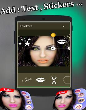 with Beauty Eyelashes makeup editor even if a person has never makeup before. Variety of makeup styles are ready to use. Changing the shape of Eyelashes then make up your lips and cheek. We believe that you’ll be totally inspired by this makeup app.