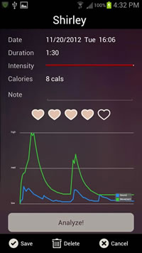 Ever wonder how good you really are in bed? Use Bed Buddy to track and measure your sexual activity based on your movement and sound. How long can you last? How passionate is your partner?