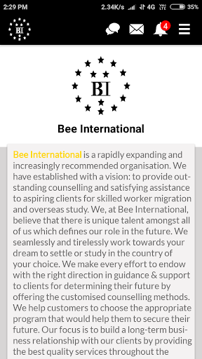 Bee International is a rapidly expanding and increasingly recommended organisation. We have established with a vision: to provide outstanding counselling and satisfying assistance to aspiring clients for skilled worker migration and overseas study. We, at Bee International, believe that there is unique talent amongst all of us which defines our role in the future. We seamlessly and tirelessly work towards your dream to settle or study in the country of your choice. We make every effort to endow with the right direction in guidance & support to clients for determining their future by offering the customized counselling methods. We help customers to choose the appropriate program that would help them to secure their future. Our focus is to build a long-term business relationship with our clients by providing the best quality services throughout the process. Our team members are well trained, competent, sociable and always prepared to facilitate the most exclusive opportunities to accomplish your desires. All our services are intended to suit your capability and ensure customer satisfaction.