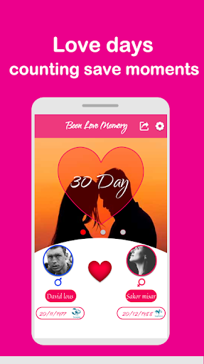 How long have been together? Count Your Love Days in a very unique style by creating love image. Application Been Love Memory will help you check the love day, been together days, couple tracker love days, count the number of days that you've been together! And customize as your own by using photos and changing names.