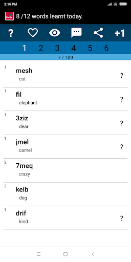 Pace yourself as you go through the more than six hundred common and popular Darija words available in the app. In just a matter of weeks, you will have an essential knowledge of the Darija vocabulary !