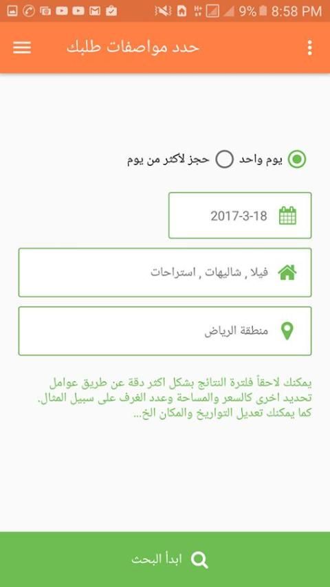 The application provides advanced search with a simple and easy user interface tools in Arabic.