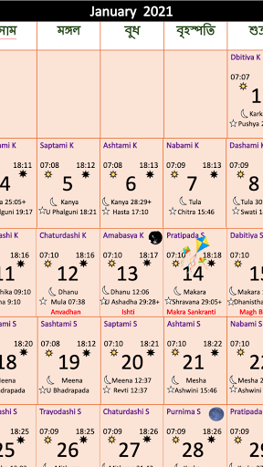 Bengali Calendar 2021 app is useful for people of West Bengal and Bengali speaking people .this app Contains all of details of festivals,holidays,half moon,full moon etc.