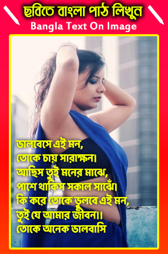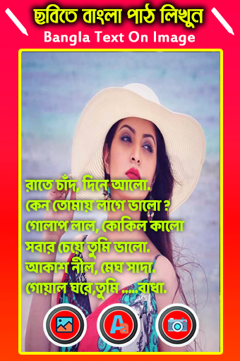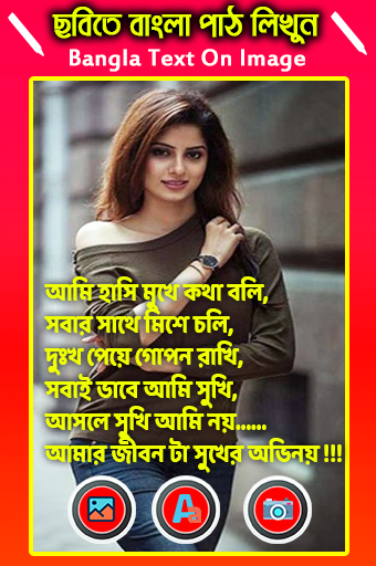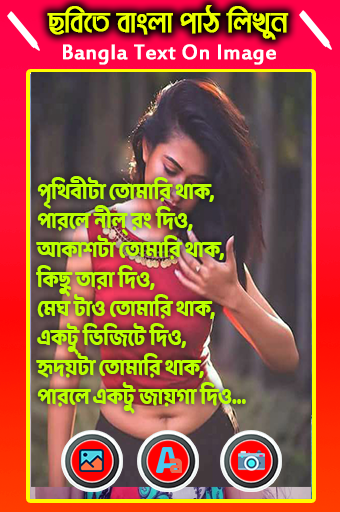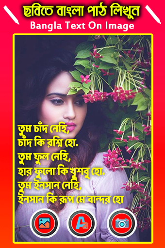 With this Bengali text on any photo create you can generate the best Bengali poems, shayari and share them with your friends and family via FB,whats up Messenger, E-mail, Massage or any other social media.