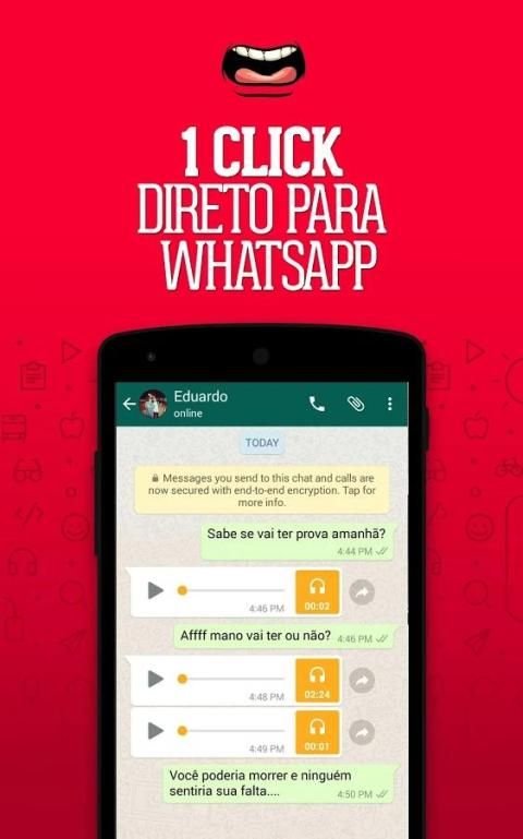 With Memes BR you can have the best audio direct from Brazil to individuals or groups. You can also save the audio in your favorite, to get faster shipping. It allows users to share audio with other applications such as Whatsapp.