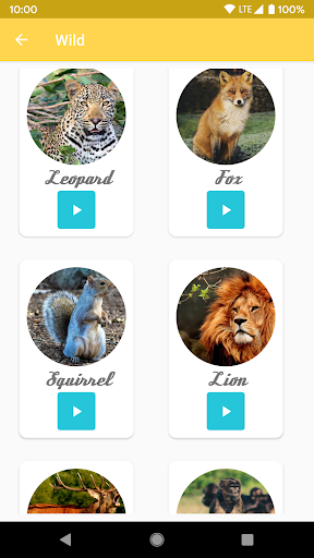 - A lot of animals and their sounds, the most fun and original, separated into different categories: wild animals, farm animals, domestic animals, etc.