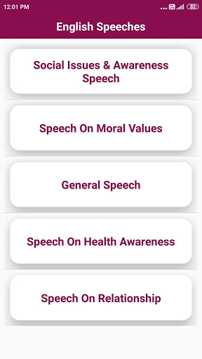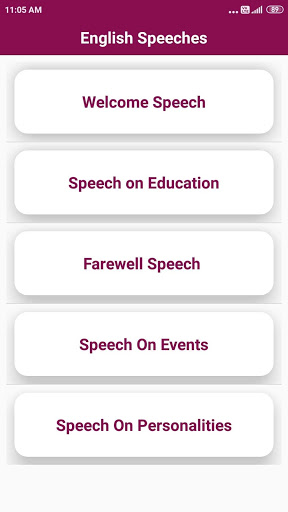 English Speech application Provides you a Collection of Speeches in English Language . The Collection of Speeches are very easy to perform and Readable Easy Application Interface .