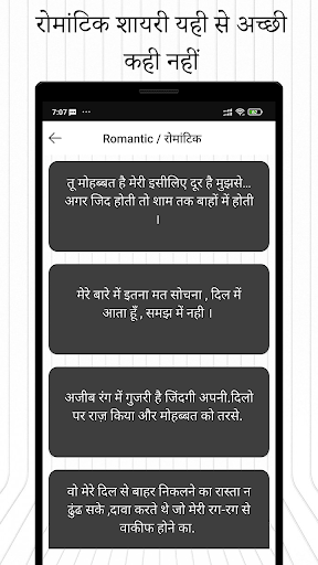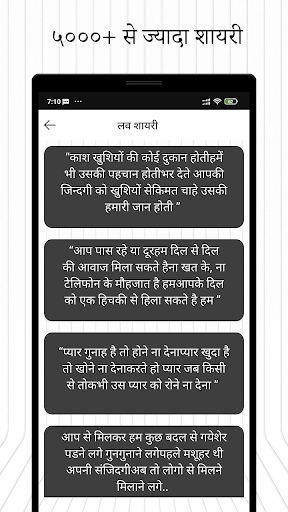 Hindi Status and Shayari application for people, who love to express their moods using their “Best Status and Shayari” on various social platforms. In Shayari Category various type of shayari there