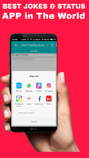 This Apk Contains Thousands of Best Status and Jokes. Enjoy that app because it consists a lot of categories and much more.