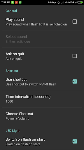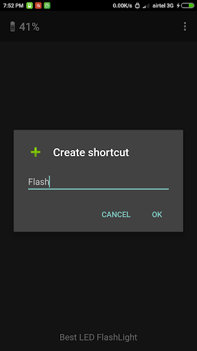 Toggle flash light home screen shortcut