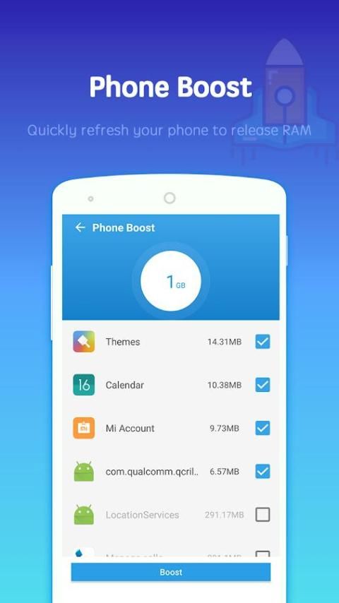 This booster makes your android phone feel like reborn and provides you a better user experience. With this function, you could quickly optimize your phone performance just by one click. Quickly accelerate your phone speed.