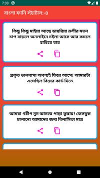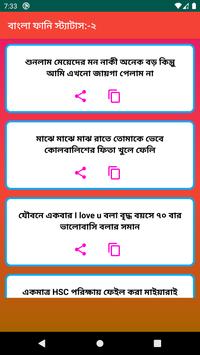Best New Bangla Funny Status এই apps এর মাধ্যমে আপনি আপনার পছন্দ মতো সকল স্ট্যাটাস গুলো অতি সহজে সবার সাথে শেয়ার করতে পারবেন | এবং এই apps এর মাধ্যমে আপনি আপনার পছন্দ মতো সকল স্ট্যাটাস গুলো অতি সহজে কপি করতে পারবেন |