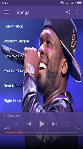 Disclaimer This is not the official app of 50 Cent, it is a fan made app for entertainment.And the developer is not a representative of 50 Cent..If you have a problem with it please contact the developer. Thank you