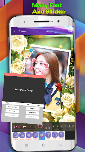 - Easily to add emojis, clip arts, smiles, text, and stickers to your photos and collages.
