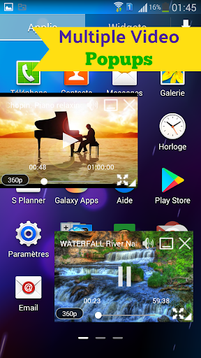 You can float one or more videos on any application of home screen of your app. You can do multi-tasking using this video player. You can also resize the videos by pinch to zoom videos. The video popups helps you to use multi applications along with watching videos.