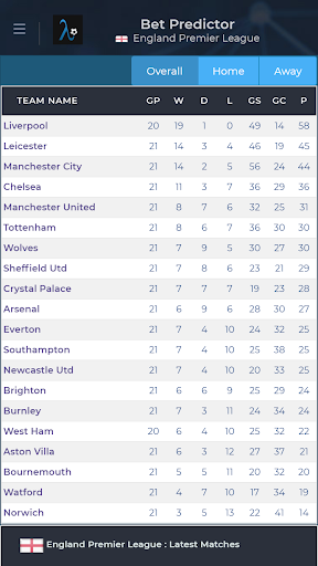 This is not just a prediction application. You can track league standings, football match results and team performances and stats here.
