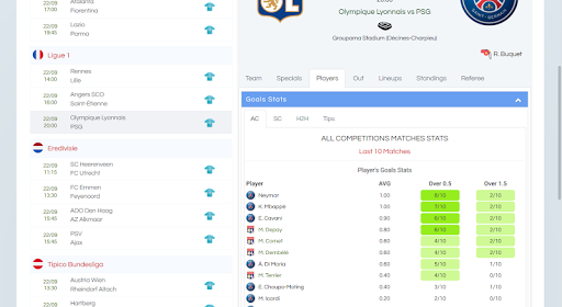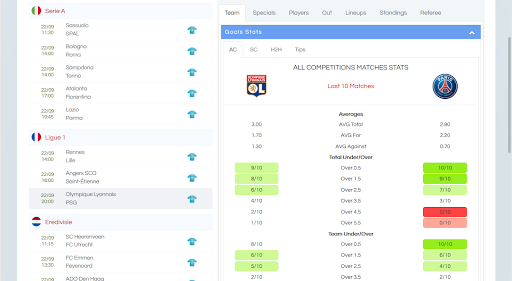 - Single competition stats - last 10 matches for both teams