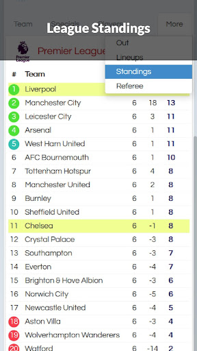 STANDINGS Tab