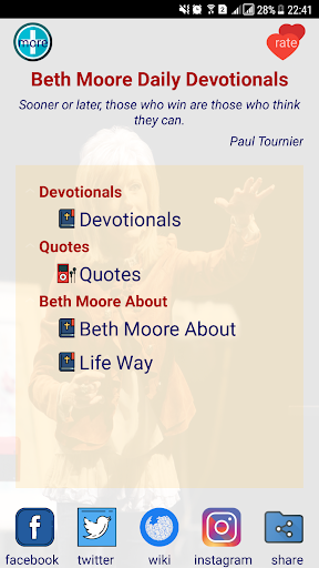 Wanda Elizabeth "Beth" Moore (born Wanda Elizabeth Green; June 16, 1957) is an American evangelist, author, and Bible teacher. She is the founder of Living Proof Ministries, a Bible-based organization for women based in Houston, Texas. The ministry focuses on aiding women who desire to model their lives on evangelical Christian principles.