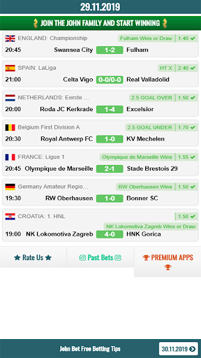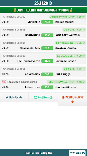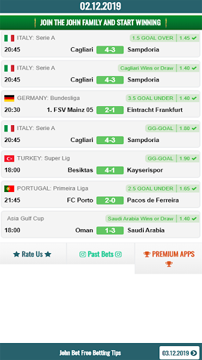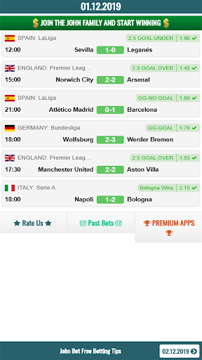 In our John Bet application, there are only football betting tips. We are analysis 70 leagues in the world and provide you tips. We are providing special high odds tips every day of year. We win a lot and we want you win too.