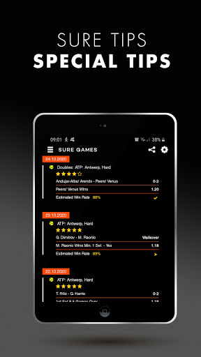 • All Prediction Types Included - winner, correct score, handicap, number of games, sure tips, big odds, value tips