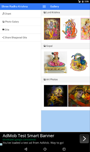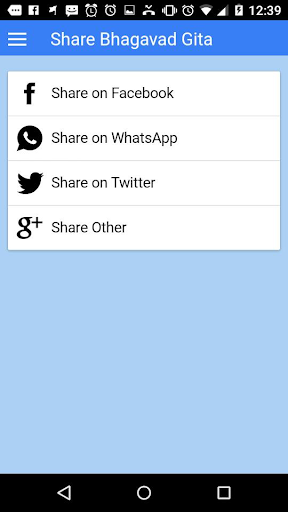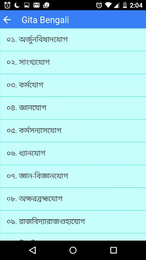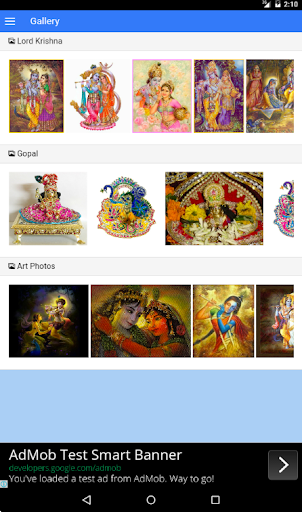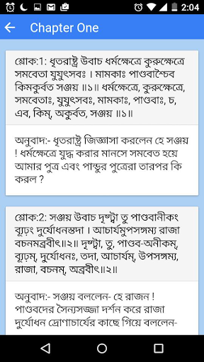 This app contain Bhagavad-Gita in different languages. It has very clean and clear user interface, so very easily user can read Bhagavad-Gita in their own language. It's home page is very colorful and user can play and pause the Harinam Kirtan. It has beautiful photo gallery with different photo section.