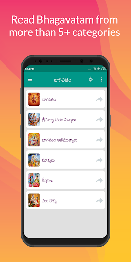 The Bhagavatam app reflects the branch of Hinduism focusing on the veneration of the divine Mahatmya of god with scholarly explanations.