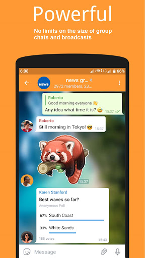 POWERFUL: You can create group chats for up to 100,000 members, share large videos, documents of any type (.DOC, .MP3, .ZIP, etc.), and even set up bots for specific tasks. It's the perfect tool for hosting online communities and coordinating teamwork.