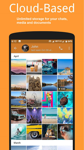 UNLIMITED: You can send media and files, without any limits on their type and size. Your entire chat history will require no disk space on your device, and will be securely stored in the Telegram cloud for as long as you need it.