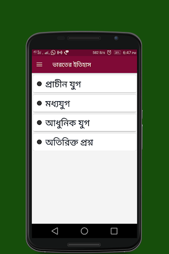 This Application i.e. History of India, contains lots of questions and answers about Indian history (Bengali: Bharater Itihas). If you are preparing for your school, college or university level examination or any competitive examination then you are at the right place. This application surely will help you a lot to prepare for Indian history.
