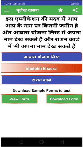 This app helps you to know how much land is there in your name, you can know very easily by Khasra number or your name and also you can see your name in the new list of ration cards. Thank you.
