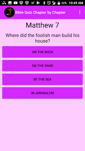 The best quiz I have seen so far. Covers almost all relevant topics and questions are not childish. The incorrect answers have references from the Bible which is an excellent help.