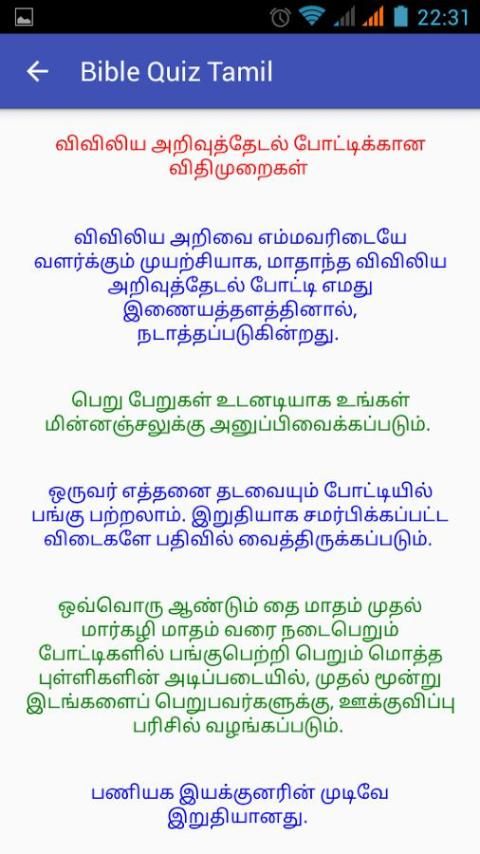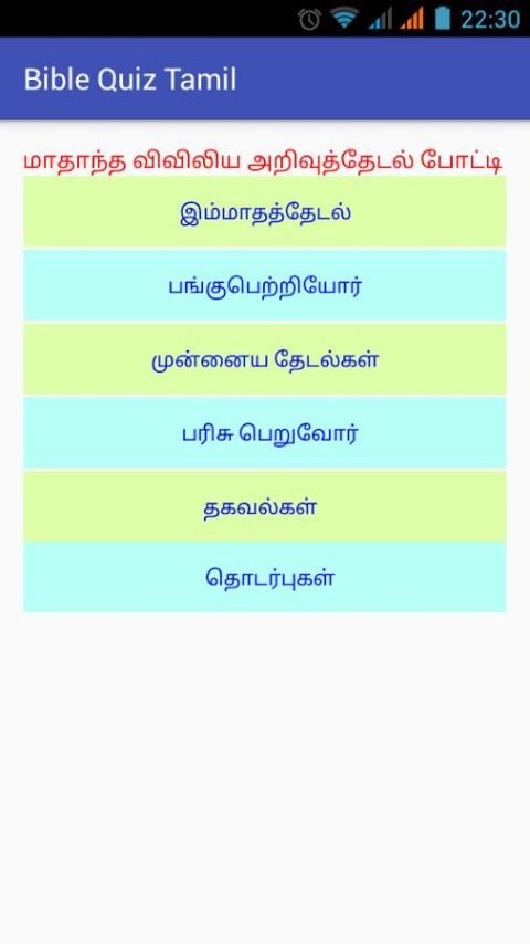 It is said that 30,000+ users downloaded Bible Quiz Tamil latest version on 9Apps for free every week! In addition, the latest version of the app has updated a lot of features. This hot app was released on 2016-03-24. For more mobile apps information, you can go to our official website - 9Apps.