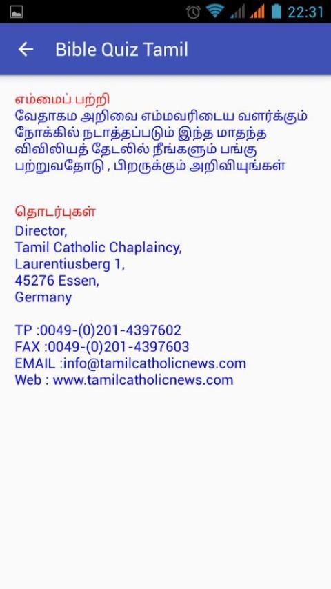 In an effort to promote emmavaritaiye biblical knowledge, the monthly German Tamil spiritual Biblical Knowledge Competition Bureau, staffed.