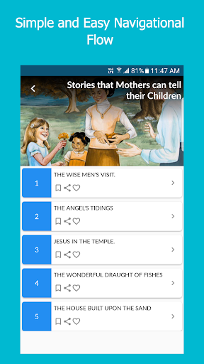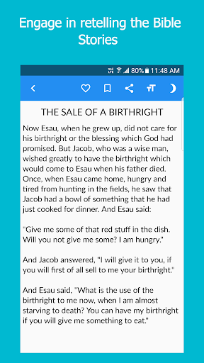 ✔️ Save your favorite Bible story and read it later with one click and share them easily