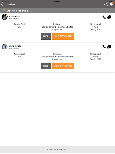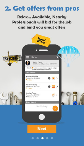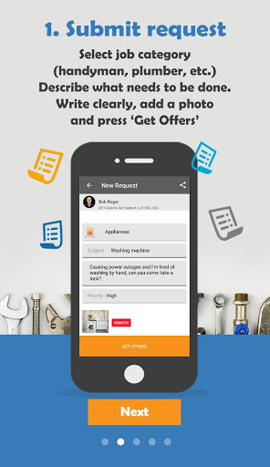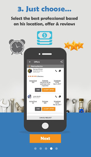 Simply prepare a brief explanation about your specific needs, and we will introduce you to available local professionals (e.g. handymen, plumbers, electricians, technicians, etc.). You’ll be able to see their ratings, compare their price quotes, read their reviews and profiles, find out their distance from you. You can select the best offer, and whenever you’re ready, hire them!