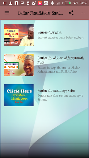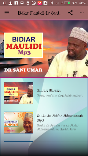 Wannan application mai suna "Bidiar Maulidi-Dr Sani Umar" na kunshe da wa'azin Sheikh Dr Muhammad Sani Umar Rijiyar Lemo Kano wanda ke magana akan Bidiar Maulidi.