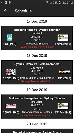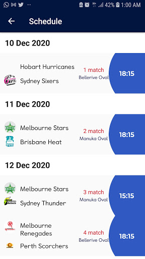 This app contains the compete schedule of Bigbash League 2019-20. If you want to enjoy BigBash Cricket League you must should download this app.