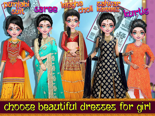 Indian Wedding Dressup Salon is a collection of gorgeous bridal dresses, jewellery, hairstyles, kalire. Here you will find Indian doll bridal collection. This game is specially made for girls and boys who like to play wedding games. Let's jump into a stylist with lovely girl, you can choose hairstyles. Indian fashion stylist top model and make her look gorgeous with new fashion trends in this Indian bride dress up and make up games and Royal North Indian Wedding Beauty Salon and Art Studio.
