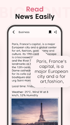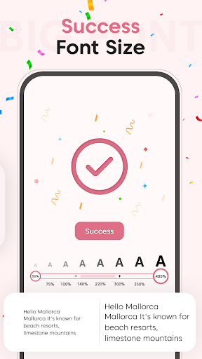 Launch this Big Font: Change Font Size app to easily convert your small-size font into a big font. Big Font: Change Font Size is a special design to convert your small fonts into big font styles. The app comes with various font styles and sizes with which you can easily change the size of the font style. Big Font: Change Font Size is an application designed to make it easier for users to read and type on their phone devices. This app allows users to enlarge the font size and keyboard size simply with one touch, making it easier to see and interact with their mobile devices.