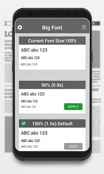 Big Front app adjusts system font size from 100% to 240% (2.4 times bigger) on your device.