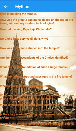 This app enlightens the users with the organized details about the Thanjavur Big Temple.