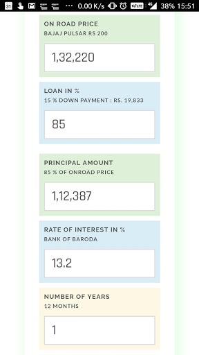 INDIA BIKE LOW CAMENT دفع يوضح مقدار القيمة التي تبلغ الفائدة عن مدة مختلفة