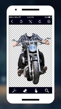 Bike photo editor - man bike photo frame & maker set your face with the suit you selected position it set ok. Erase unwanted background with the help of eraser. For quick erase use the auto eraser. Set any beautiful backgrounds to your photos in this men bike racing rider photo suit editor 2019. Just edit your photo using this app and get the idea about how you look like in all these things. Decorate your awesome picture and create stunning beautiful memory with a bike photo editor. This bike photo editor has a crop option which you can apply to your pictures. This photo editor gives you the best effect to apply to your photo. Bike photo suit is so easy to make a real work of art because you will find so inspiring party photo suits in this the newest photo booth and stunt bike photo frame and suit with spots bike photo suit or bullet bike photo frame.