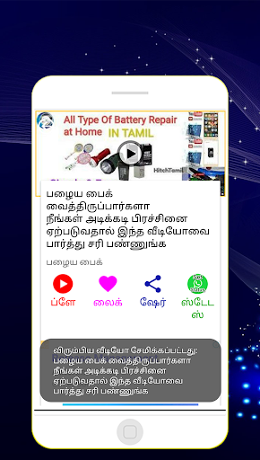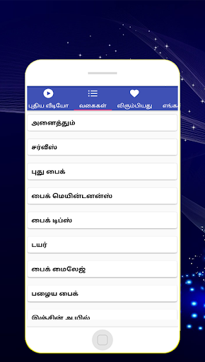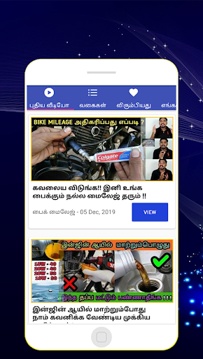 Hai friends !! Its an very simple bike maintenance videos tamil app. Here you can get bike repair videos in our tamil language only. You can share these bike service tamil videos. Daily you can see the bike puncture tamil videos and get motivations. In this app we use bike water service videos in tamil. Here let you know about how to find online bike service in tamil for everyone and get useful. These best two wheeler service videos will help you to care your bike. You can share scooty repair in tamil and many more. You can set bike puncture repair videos. Also you share many bike assembly video to your favouite one. Here you can get bike oil change in tamil. So stay tuned our app and get the bike repair at home via our simple tamil android application. Also some features of our app is bike water service videos. You can share two wheeler repair and many more. Here in this app let you know about how to get best 2 wheeler service video. Here you can get scooty servicing for those who are having scooty bike. Don't miss this friends !! In this android app simple bike cleaning tamil videos share to all your friends. Here you can get bike engine repair confidence videos etc. You can set how to increase 100cc bike mileage in tamil. Daily you can see the bike mileage depends on what in tamil download. In this app we show how to increase mileage of scooty videos tamil about bike. Also some features of our app is how to increase mileage of splendor plus and etc. Here in this app let you know about how to get sudden drop in bike mileage in tamil and make use of this instructions.