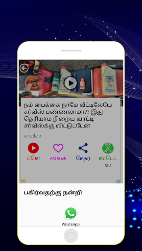 Ulahengum vaalum tamil nenjangangaluku vanakkam. Intha seyaliyil bike maintenance video palavatrai ungalukaka thara ullom. Ithil tamilarkal anaivarukkum pidikum vakaiyil ulla mileage, service pontravatari intha seyaliyil thokuthu valanga ullom. Intha android seyaliyai anaithu nanbarkalukkum, uravinarkalukkum whatsapp, facebook, telegram, email pontra social mediavil share pannunga.