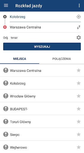 The mobile journey planner for Android smartphones offers the most comprehensive information service for your journey with all railway providers in Poland and beyond the border. The free app seamlessly finds connections or checks current arrival times. Plan your trip from your current location to the next train station, a specific address or your point of interest. Bilkom is the only official app for Android smartphones providing all the information available in the timetable of Polish State Railways PKP (www.rozklad-pkp.pl).